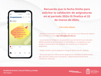 Recuerda que la fecha límite para solicitar la validación de asignaturas en el período 202-1S finaliza el 22 de marzo de 2024.