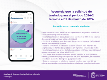 Recuerda que la solicitud de traslado para el periodo 2024-2S termina el 15 de marzo de 2024. Para ello ten en cuenta lo siguiente:
