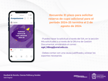 Recuerda: El plazo para solicitar reserva de cupo adicional para el período 2024-2S termina el 2 de agosto de 2024.